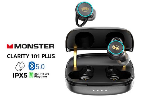 Monster Clarity 101 Plus AirLinks Wireless In-Ear Headphones - Black / IPX5 Waterproof, Bluetooth Earbuds 5.0, Up to 28 Hours with Fully Charged Case, Bluetooth Headphones Built-in Mic, Truly Wireless Headphones with Deep Bass for Sport / MH22003BK / MH22003BK