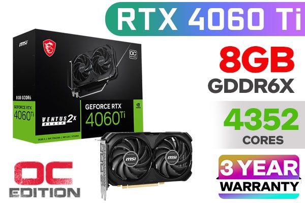 MSI GeForce RTX 4060 Ti Ventus 2X Black 8GB OC GDRR6