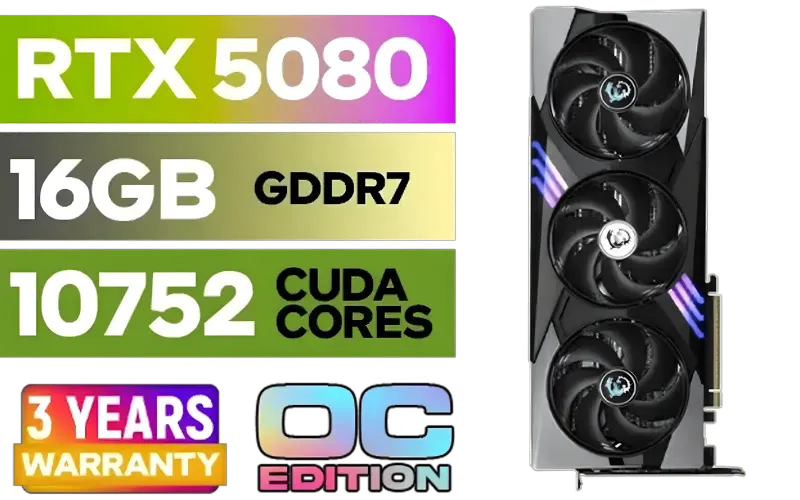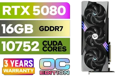 MSI GeForce RTX 5080 16G Gaming Trio OC Graphics Card - Precision Airflow Control - Nickel-Plated Copper Base - Metal Backplate - 16GB GDDR7 - 30Gbps Memory Speed - PCI Express® Gen 5 / 912-V531-026