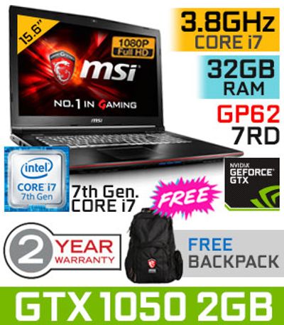 MSI GP62 7RD GTX 1050 i7 Gaming Laptop With 32GB RAM