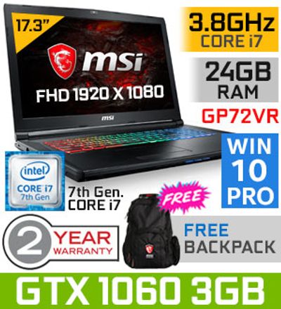 MSI GP72VR 7RFX GTX 1060 Gaming Laptop With 24GB RAM