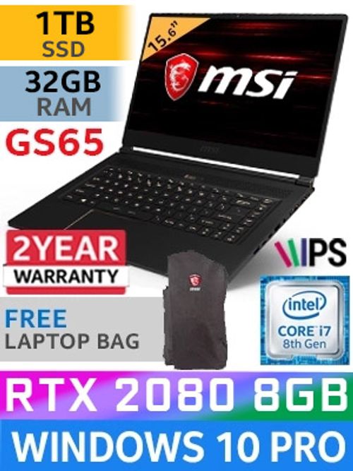 MSI GS65 Stealth 8SG Thin 8th Gen Intel Core i7-8750H up to 4.1GHz Processor, 9MB Cache, 6x Cores, 12x Threads / 32GB DDR4 RAM / 1TB Ultra-Fast NVME SSD / 15.6" FHD (1920 x 1080) 144Hz Refresh Rate With IPS-Level Narrow Bezel Display / Latest 20 Series Nvidia GeForce RTX 2080 8GB GDDR6 Graphics With Desktop Level Performance / <span style="color:red; font-size: 17px;">Windows 10 Professional (64bit)</span> / Steelseries Per Key <span style="font-size: 20px; color: rgb(255, 0, 0);">R</span><span style="font-size: 20px; color: rgb(51, 153, 0);">G</span><span style="font-size: 20px; color: rgb(51, 102, 255);">B</span></span> Backlit Gaming Keyboard / 720p HD Webcam / Bluetooth v5 / SD (XC/HC) Card Reader / 802.11ac Wireless LAN / 1 x HDMI 2.0 / 1 x Mini Displayport / 1 x USB 3.1 Type-C Thunderbolt / 3 x USB 3.1 Type-A / Nahimic 3 Sound Technology + 2x 2W DYNAUDIO Speakers / Ultra-Thin Bezel Design + Ultra-Light 1.8KG / <span style="font-size: 18px; color: blue;">2 Years Fetch And Repair MSI Warranty</span> / FREE MSI Gaming GS Air Backpack / MSI GS65 Stealth 8th Gen RTX 2080 Pro Gaming LaptopMSI GS65 Stealth 8SG Thin 8th Gen Intel Core i7-8750H up to 4.1GHz Processor, 9MB Cache, 6x Cores, 12x Threads / 32GB DDR4 RAM / 1TB Ultra-Fast NVME SSD / 15.6" FHD (1920 x 1080) 144Hz Refresh Rate With IPS-Level Narrow Bezel Display / Latest 20 Series Nvidia GeForce RTX 2080 8GB GDDR6 Graphics With Desktop Level Performance / Windows 10 Professional (64bit) / Steelseries Per Key RGB Backlit Gaming Keyboard / 720p HD Webcam / Bluetooth v5 / SD (XC/HC) Card Reader / 802.11ac Wireless LAN / 1 x HDMI 2.0 / 1 x Mini Displayport / 1 x USB 3.1 Type-C Thunderbolt / 3 x USB 3.1 Type-A / Nahimic 3 Sound Technology + 2x 2W DYNAUDIO Speakers / Ultra-Thin Bezel Design + Ultra-Light 1.8KG / 2 Years Fetch And Repair MSI Warranty / FREE MSI Gaming GS Air Backpack / MSI GS65 Stealth 8th Gen RTX 2080 Pro Gaming Laptop [MS-GS65-8SG-257ZA/1TB] + FREE DELIVERY !