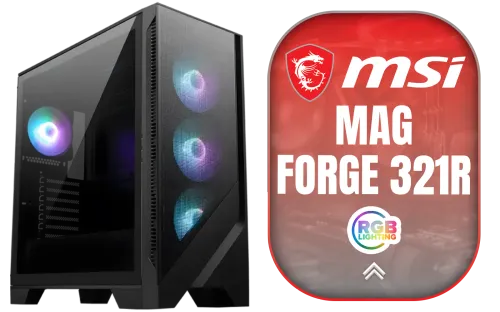 MSI Mag Forge 321R Airflow ATX Gaming PC Case / Supports 360mm AIO Cooler, 40 Series GPU / Up to 11 System Fans Configuration / Tempered Glass Side Panel / Built-in ARGB fans and control board / Magnetic Dust Filter / 306-7G23R22-HH9 / 306-7G23R22-HH9 + FREE DELIVERY !