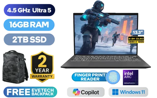 MSI Prestige 13 AI Evo A1MG Intel Core Ultra 5-125H Up to 4.5GHz Processor, 18MB Cache, 14x Cores, 18x Threads / 16GB LPDDR5X RAM / 2TB Ultra-Fast NVMe SSD / 13.3" 2.8K (2880x1800) OLED Display / Integrated Intel Arc Graphics / Windows 11 Home (64bit) / Intel Killer BE Wi-Fi 7 BE1750w Wireless LAN / Bluetooth 5.4 / FHD IR Web Camera / 1x Type-A / 2x USB Type-C (Thunderbolt 4 / DisplayPort / Power Delivery) / 1x HDMI / 1x Headphone & Microphone Combo Jack / 1x Micro SD Card Reader / Fingerprint Sensor / White Backlit Keyboard / MSI Prestige 13 AI Evo A1MG Core Ultra 5 Laptop DealMSI Prestige 13 AI Evo A1MG Intel Core Ultra 5-125H Up to 4.5GHz Processor, 18MB Cache, 14x Cores, 18x Threads / 16GB LPDDR5X RAM / 2TB Ultra-Fast NVMe SSD / 13.3" 2.8K (2880x1800) OLED Display / Integrated Intel Arc Graphics / Windows 11 Home (64bit) / Intel Killer BE Wi-Fi 7 BE1750w Wireless LAN / Bluetooth 5.4 / FHD IR Web Camera / 1x Type-A / 2x USB Type-C (Thunderbolt 4 / DisplayPort / Power Delivery) / 1x HDMI / 1x Headphone & Microphone Combo Jack / 1x Micro SD Card Reader / Fingerprint Sensor / White Backlit Keyboard / MSI Prestige 13 AI Evo A1MG Core Ultra 5 Laptop Deal [Prestige-13 AI+ Evo-A1MG-276ZA/2TB] / [+] GET FREE EVETECH DASH Premium Gaming Backpack+ FREE DELIVERY !