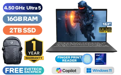 MSI Prestige 13 AI Evo A1MG Intel Core Ultra 5 125H up to 4.50GHz Processor, 18MB Cache, 14x Cores, 18x Threads / 16GB LPDDR5 RAM / 2TB NVMe SSD / 13.3" 2.8K (2880 x 1800) OLED Display / Intel Arc Graphics / Windows 11 Home / Intel Killer BE1750W Wi-Fi 7 Wireless LAN / Bluetooth 5.4 / 1080p FHD IR Camera / 1x USB Type-A / 2x USB Type-C (Supports Thunderbolt 4 / DisplayPort / Power Delivery ) / 1x Micro SD Card Reader / 1x HDMI / 1x Microphone & Headphone Combo Jack / Kensington Lock / Fingerprint Reader / Single White Backlit Keyboard / 2x 2W Speakers / 2 Year Warranty / MSI Prestige 13 AI Evo A1MG Intel Core Ultra 5 Laptop DealMSI Prestige 13 AI Evo A1MG Intel Core Ultra 5 125H up to 4.50GHz Processor, 18MB Cache, 14x Cores, 18x Threads / 16GB LPDDR5 RAM / 2TB NVMe SSD / 13.3" 2.8K (2880 x 1800) OLED Display / Intel Arc Graphics / Windows 11 Home / Intel Killer BE1750W Wi-Fi 7 Wireless LAN / Bluetooth 5.4 / 1080p FHD IR Camera / 1x USB Type-A / 2x USB Type-C (Supports Thunderbolt 4 / DisplayPort / Power Delivery ) / 1x Micro SD Card Reader / 1x HDMI / 1x Microphone & Headphone Combo Jack / Kensington Lock / Fingerprint Reader / Single White Backlit Keyboard / 2x 2W Speakers / 2 Year Warranty / MSI Prestige 13 AI Evo A1MG Intel Core Ultra 5 Laptop Deal [Prestige-13 AI+-Evo-A1VMG-276ZA/2TB] / [+] GET FREE EVETECH FLUX Premium Gaming Backpack+ FREE DELIVERY !