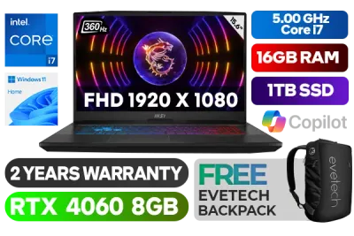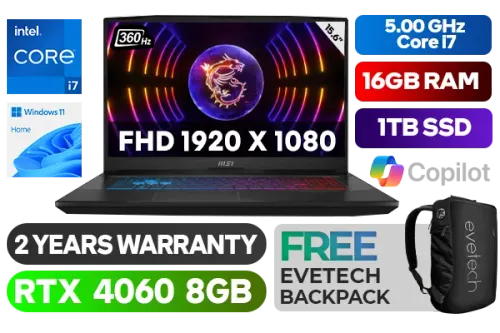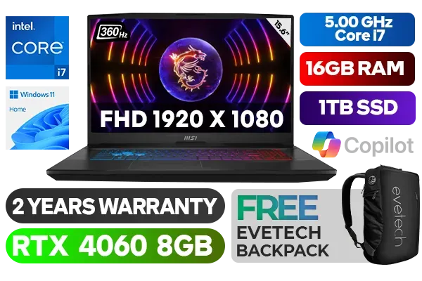 MSI PULSE 15 B13VFK 13th Gen Intel Core i7-13700H up to 5.00GHz Processor, 24MB Cache, 14x Cores, 20x Threads / 16GB DDR5 RAM / 1TB Ultra-Fast NVMe SSD / 15.6" Full HD (1920 x 1080) Anti-Glare 360Hz IPS-Level Display / NVIDIA 40 Series GeForce RTX 4060 8GB GDDR6 Dedicated Graphics / Windows 11 Home (64bit) / HD (30fps@720p) Web Camera / WiFi 6 AX201 Wireless LAN / Bluetooth v5.2 / 1 x USB 2.0 / 2 x USB 3.2 Type-A / 1x USB 3.2 Type-C / 1 x HDMI / 1x Mic-in/Headphone-out Combo Jack / 1x RJ45 / RGB Backlight Keyboard / Nahimic Hi-Res Audio / 2 Year MSI Warranty / MSI PULSE 15 B13VFK Core i7 RTX 4060 Gaming Laptop DealMSI PULSE 15 B13VFK 13th Gen Intel Core i7-13700H up to 5.00GHz Processor, 24MB Cache, 14x Cores, 20x Threads / 16GB DDR5 RAM / 1TB Ultra-Fast NVMe SSD / 15.6" Full HD (1920 x 1080) Anti-Glare 360Hz IPS-Level Display / NVIDIA 40 Series GeForce RTX 4060 8GB GDDR6 Dedicated Graphics / Windows 11 Home (64bit) / HD (30fps@720p) Web Camera / WiFi 6 AX201 Wireless LAN / Bluetooth v5.2 / 1 x USB 2.0 / 2 x USB 3.2 Type-A / 1x USB 3.2 Type-C / 1 x HDMI / 1x Mic-in/Headphone-out Combo Jack / 1x RJ45 / RGB Backlight Keyboard / Nahimic Hi-Res Audio / 2 Year MSI Warranty / MSI PULSE 15 B13VFK Core i7 RTX 4060 Gaming Laptop Deal [MSI-PULSE-15-B13VFK-849ZA] / [+] GET FREE EVETECH NEO Premium Gaming Backpack+ FREE DELIVERY !