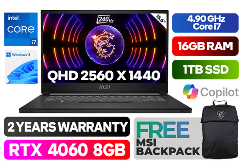 MSI Stealth 15 A13VF 13th Gen Intel Raptor Lake Core i7-13620H up to 4.90GHz Processor, 24MB Cache, 10x Cores, 16x Threads / 16GB DDR5 RAM / 1TB Ultra-Fast NVME SSD / 15.6" QHD (2560 x 1440) 240Hz Refresh-rate With OLED Display / NVIDIA 40 Series GeForce RTX 4060 8GB GDDR6 Dedicated Graphics / Windows 11 Home (64bit) / White Backlit Keyboard / HD Web Camera (30fps@720p) / Bluetooth v5.2 / Wi-Fi 6 AX201 Wireless LAN / 1 x Mic-in/Headphone-out Combo Jack / 1 x USB Type-C ( DP) / 1 x USB 3.2 Type-C / 2 x USB 3.2 Type-A / 1 x HDMI / Nahimic Next Level Audio / 2 Year Warranty / Free Msi Backpack / MSI Stealth 15 A13VF Core i7 RTX 4060 Gaming Laptop DealMSI Stealth 15 A13VF 13th Gen Intel Raptor Lake Core i7-13620H up to 4.90GHz Processor, 24MB Cache, 10x Cores, 16x Threads / 16GB DDR5 RAM / 1TB Ultra-Fast NVME SSD / 15.6" QHD (2560 x 1440) 240Hz Refresh-rate With OLED Display / NVIDIA 40 Series GeForce RTX 4060 8GB GDDR6 Dedicated Graphics / Windows 11 Home (64bit) / White Backlit Keyboard / HD Web Camera (30fps@720p) / Bluetooth v5.2 / Wi-Fi 6 AX201 Wireless LAN / 1 x Mic-in/Headphone-out Combo Jack / 1 x USB Type-C ( DP) / 1 x USB 3.2 Type-C / 2 x USB 3.2 Type-A / 1 x HDMI / Nahimic Next Level Audio / 2 Year Warranty / Free Msi Backpack / MSI Stealth 15 A13VF Core i7 RTX 4060 Gaming Laptop Deal [Stealth-15-A13VF] + FREE DELIVERY !