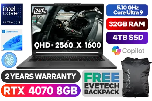MSI Stealth 16 Mercedes AMG A1VGG Intel Core Ultra 9-185H up to 5.10GHz Processor, 24MB Cache, 16x Cores, 22x Threads / 32GB DDR5 RAM / 4TB Ultra-Fast NVME SSD / 16.0" QHD+ (2560 x 1600) 240Hz IPS-Level OLED Display / NVIDIA 40 Series GeForce RTX 4070 8GB GDDR6 Dedicated Graphics / Windows 11 Home (64bit) / Intel Killer Wi-Fi 7 Wireless LAN / Bluetooth 5.4 / FHD IR Camera / Fingerprint Reader / Per-Key RGB Gaming Keyboard by SteelSeries / 1x USB Type-A / 2x USB Type-C / 1x RJ45 / 1x HDMI / 1x Mic-in/Headphone-out Combo Jack / 1x Micro SD Card Reader / Sound by Dynaudio / Free MSI AMG Mouse + Free MSI AMG Dual Drive + Free MSI AMG Pouch + Free MSI AMG Mouse Pad / 2 Years Warranty / MSI Stealth 16 AMG A1VGG Ultra 9 RTX 4070 Gaming Laptop DealMSI Stealth 16 Mercedes AMG A1VGG Intel Core Ultra 9-185H up to 5.10GHz Processor, 24MB Cache, 16x Cores, 22x Threads / 32GB DDR5 RAM / 4TB Ultra-Fast NVME SSD / 16.0" QHD+ (2560 x 1600) 240Hz IPS-Level OLED Display / NVIDIA 40 Series GeForce RTX 4070 8GB GDDR6 Dedicated Graphics / Windows 11 Home (64bit) / Intel Killer Wi-Fi 7 Wireless LAN / Bluetooth 5.4 / FHD IR Camera / Fingerprint Reader / Per-Key RGB Gaming Keyboard by SteelSeries / 1x USB Type-A / 2x USB Type-C / 1x RJ45 / 1x HDMI / 1x Mic-in/Headphone-out Combo Jack / 1x Micro SD Card Reader / Sound by Dynaudio / Free MSI AMG Mouse + Free MSI AMG Dual Drive + Free MSI AMG Pouch + Free MSI AMG Mouse Pad / 2 Years Warranty / MSI Stealth 16 AMG A1VGG Ultra 9 RTX 4070 Gaming Laptop Deal [STEALTH-16-MERCEDESAMG-A1VGG-408ZA/4TB] + FREE DELIVERY !
