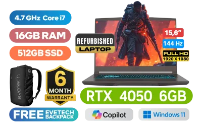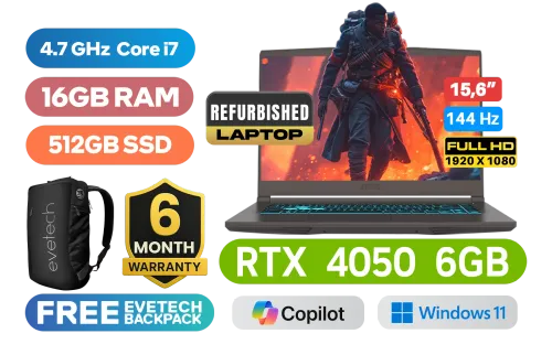[Open Box Refurbished Laptop] MSI THIN 15 B12VE 12th Gen Intel Core i7-12650H up to 4.7GHz Processor, 24MB Cache, 10x Cores, 16x Threads / 16GB DDR4 RAM / 512GB Ultra-Fast NVMe SSD / 15.6" FHD 1920x1080 144Hz IPS Level Display / NVIDIA GeForce RTX 4050 6GB GDDR6 Dedicated Graphics / Windows 11 Home 64bit / Blue Backlit Gaming Keyboard / HD Web Camera (30fps@720p) / Bluetooth v5.3 / Intel Wi-Fi 6E Wireless LAN / 3 x USB 3.2 Type-A / 1 x USB 3.2 Type-C / 1 x HDMI / 1x Microphone jack & 1x Headphone jack / Nahimic 3 Audio Boost + 2 x 2W Speaker / 6 Months Warranty / MSI THIN 15 B12VE Core i7 12th Gen RTX 4050 Gaming Laptop Deal[Open Box Refurbished Laptop] MSI THIN 15 B12VE 12th Gen Intel Core i7-12650H up to 4.7GHz Processor, 24MB Cache, 10x Cores, 16x Threads / 16GB DDR4 RAM / 512GB Ultra-Fast NVMe SSD / 15.6" FHD 1920x1080 144Hz IPS Level Display / NVIDIA GeForce RTX 4050 6GB GDDR6 Dedicated Graphics / Windows 11 Home 64bit / Blue Backlit Gaming Keyboard / HD Web Camera (30fps@720p) / Bluetooth v5.3 / Intel Wi-Fi 6E Wireless LAN / 3 x USB 3.2 Type-A / 1 x USB 3.2 Type-C / 1 x HDMI / 1x Microphone jack & 1x Headphone jack / Nahimic 3 Audio Boost + 2 x 2W Speaker / 6 Months Warranty / MSI THIN 15 B12VE Core i7 12th Gen RTX 4050 Gaming Laptop Deal [OB-RFBD-MSI-THIN-15-B12VE-1293ZA] / [+] GET FREE EVETECH NEO Premium Gaming Backpack+ FREE DELIVERY !
