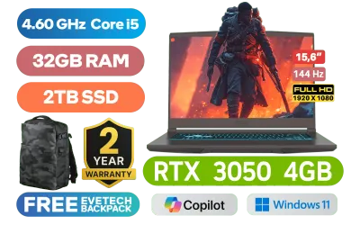 MSI THIN 15 B13UC 13th Gen Intel® Core™ i5-13420H up to 4.60GHz Processor, 12MB Cache, 8x Cores, 12x Threads / 32GB DDR4 RAM / 2TB Ultra-Fast NVMe SSD / 15.6" FHD (1920x1080) 144Hz, Anti-Glare IPS Level Display / NVIDIA GeForce RTX 3050 4GB GDDR6 Graphics / Windows 11 Home 64bit / 720P HD Web Camera / Intel Wi-Fi 6E AX211 Wireless LAN / Bluetooth 5.3 / Blue Backlit Gaming Keyboard / 3 x USB Type-A / 1 x USB Type-C / 1 x HDMI / 1x RJ-45 Ethernet LAN / 1x Headphone & 1x Microphone Audio Jack / 2 x 2W Speaker / 2 Years Warranty / MSI THIN 15 B13UC 13th Gen Intel® Core™ i5 RTX 3050 Gaming Laptop DealMSI THIN 15 B13UC 13th Gen Intel® Core™ i5-13420H up to 4.60GHz Processor, 12MB Cache, 8x Cores, 12x Threads / 32GB DDR4 RAM / 2TB Ultra-Fast NVMe SSD / 15.6" FHD (1920x1080) 144Hz, Anti-Glare IPS Level Display / NVIDIA GeForce RTX 3050 4GB GDDR6 Graphics / Windows 11 Home 64bit / 720P HD Web Camera / Intel Wi-Fi 6E AX211 Wireless LAN / Bluetooth 5.3 / Blue Backlit Gaming Keyboard / 3 x USB Type-A / 1 x USB Type-C / 1 x HDMI / 1x RJ-45 Ethernet LAN / 1x Headphone & 1x Microphone Audio Jack / 2 x 2W Speaker / 2 Years Warranty / MSI THIN 15 B13UC 13th Gen Intel® Core™ i5 RTX 3050 Gaming Laptop Deal [THIN-15-B13UC-3069ZA/32GB/2TB] / [+] GET FREE EVETECH DASH Premium Gaming Backpack+ FREE DELIVERY !