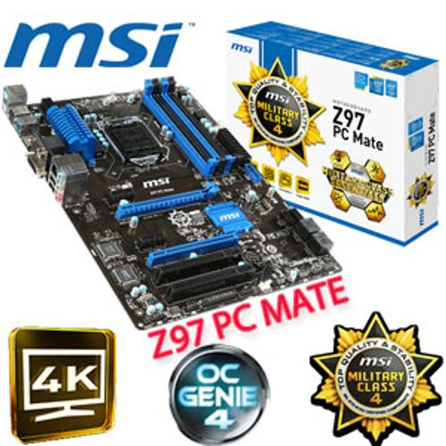 MSI Z97 PC MATE Motherboard / Support 4th and 5th Generation Intel Processors / Support DDR3-3000 OC Memeory / USB 3.0 + SATA 6Gb/s / Military Class 4 Components / OC Genie 4 / Click BIOS 4 / 4k UHD Support / Multi GPU / Fast Boot | Evetech