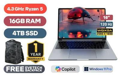 [TOUCHSCREEN] Ninkear A15 Pro AMD Ryzen 5-7400U up to 4.3GHz Processor, 22MB Cache, 6x Cores, 12x Threads / 16GB DDR4 RAM / 4TB Ultra-Fast NVME SSD / 16” 2.5K (2560 x 1600) 120Hz, IPS-Level Display / Integrated AMD Radeon Graphics / <span style="font-size: 20px; color: #00BFFF; font-weight: bold;">Windows 11 Professional (64bit)</span> / RealTek WiFi 6 8852BE Wireless LAN / Bluetooth 5.2 / FHD Camera / 3x USB Type-A / 2x USB Type-C (Supports DisplayPort / Power Delivery) / 1x HDMI / 1x Headphone & Microphone Combo Jack / 1x Mirco SD Card Reader / Finger Print Reader / Kensington Lock / White Backlit Keyboard / 2x Stereo Speakers / Free NinKear Wired Mouse / Free NinKear Mouse Pad / Free NinKear Multi-Language Keyboard Layouts / 1 Year Warranty / Ninkear A15 Pro AMD Ryzen 5 Laptop Deal[TOUCHSCREEN] Ninkear A15 Pro AMD Ryzen 5-7400U up to 4.3GHz Processor, 22MB Cache, 6x Cores, 12x Threads / 16GB DDR4 RAM / 4TB Ultra-Fast NVME SSD / 16” 2.5K (2560 x 1600) 120Hz, IPS-Level Display / Integrated AMD Radeon Graphics / Windows 11 Professional (64bit) / RealTek WiFi 6 8852BE Wireless LAN / Bluetooth 5.2 / FHD Camera / 3x USB Type-A / 2x USB Type-C (Supports DisplayPort / Power Delivery) / 1x HDMI / 1x Headphone & Microphone Combo Jack / 1x Mirco SD Card Reader / Finger Print Reader / Kensington Lock / White Backlit Keyboard / 2x Stereo Speakers / Free NinKear Wired Mouse / Free NinKear Mouse Pad / Free NinKear Multi-Language Keyboard Layouts / 1 Year Warranty / Ninkear A15 Pro AMD Ryzen 5 Laptop Deal [A15-Pro/4TB] / [+] GET FREE EVETECH DASH Premium Gaming Backpack+ FREE DELIVERY !