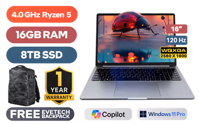 Ninkear A15 Pro AMD Ryzen 5-5500U up to 4.0GHz Processor, 11MB Cache, 6x Cores, 12x Threads / 16GB DDR4 RAM / 8TB Ultra-Fast NVME SSD / 16” 2.5K (2560 x 1600) 120Hz, IPS-Level Display / Integrated AMD Radeon Graphics / <span style="font-size: 20px; color: #00BFFF; font-weight: bold;">Windows 11 Professional (64bit)</span> / RealTek WiFi 6 8852BE Wireless LAN / Bluetooth 5.2 / FHD Camera / 3x USB Type-A / 2x USB Type-C (Supports DisplayPort / Power Delivery) / 1x HDMI / 1x Headphone & Microphone Combo Jack / 1x Mirco SD Card Reader / Finger Print Reader / Kensington Lock / White Backlit Keyboard / 2x Stereo Speakers / Free NinKear Wired Mouse / Free NinKear Mouse Pad / Free NinKear Multi-Language Keyboard Layouts / 1 Year Warranty / Ninkear A15 Pro AMD Ryzen 5 Laptop DealNinkear A15 Pro AMD Ryzen 5-5500U up to 4.0GHz Processor, 11MB Cache, 6x Cores, 12x Threads / 16GB DDR4 RAM / 8TB Ultra-Fast NVME SSD / 16” 2.5K (2560 x 1600) 120Hz, IPS-Level Display / Integrated AMD Radeon Graphics / Windows 11 Professional (64bit) / RealTek WiFi 6 8852BE Wireless LAN / Bluetooth 5.2 / FHD Camera / 3x USB Type-A / 2x USB Type-C (Supports DisplayPort / Power Delivery) / 1x HDMI / 1x Headphone & Microphone Combo Jack / 1x Mirco SD Card Reader / Finger Print Reader / Kensington Lock / White Backlit Keyboard / 2x Stereo Speakers / Free NinKear Wired Mouse / Free NinKear Mouse Pad / Free NinKear Multi-Language Keyboard Layouts / 1 Year Warranty / Ninkear A15 Pro AMD Ryzen 5 Laptop Deal [A15-Pro/8TB] / [+] GET FREE EVETECH DASH Premium Gaming Backpack+ FREE DELIVERY !
