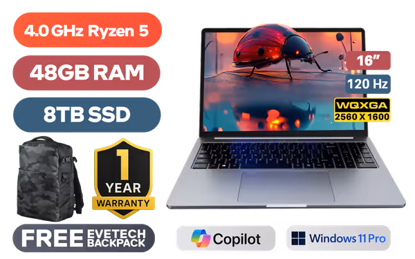 Ninkear A15 Pro AMD Ryzen 5-5500U up to 4.0GHz Processor, 11MB Cache, 6x Cores, 12x Threads / 48GB DDR4 RAM / 8TB Ultra-Fast NVME SSD / 16” 2.5K (2560 x 1600) 120Hz, IPS-Level Display / Integrated AMD Radeon Graphics / <span style="font-size: 20px; color: #00BFFF; font-weight: bold;">Windows 11 Professional (64bit)</span> / RealTek WiFi 6 8852BE Wireless LAN / Bluetooth 5.2 / FHD Camera / 3x USB Type-A / 2x USB Type-C (Supports DisplayPort / Power Delivery) / 1x HDMI / 1x Headphone & Microphone Combo Jack / 1x Mirco SD Card Reader / Finger Print Reader / Kensington Lock / White Backlit Keyboard / 2x Stereo Speakers / Free NinKear Wired Mouse / Free NinKear Mouse Pad / Free NinKear Multi-Language Keyboard Layouts / 1 Year Warranty / Ninkear A15 Pro AMD Ryzen 5 Laptop DealNinkear A15 Pro AMD Ryzen 5-5500U up to 4.0GHz Processor, 11MB Cache, 6x Cores, 12x Threads / 48GB DDR4 RAM / 8TB Ultra-Fast NVME SSD / 16” 2.5K (2560 x 1600) 120Hz, IPS-Level Display / Integrated AMD Radeon Graphics / Windows 11 Professional (64bit) / RealTek WiFi 6 8852BE Wireless LAN / Bluetooth 5.2 / FHD Camera / 3x USB Type-A / 2x USB Type-C (Supports DisplayPort / Power Delivery) / 1x HDMI / 1x Headphone & Microphone Combo Jack / 1x Mirco SD Card Reader / Finger Print Reader / Kensington Lock / White Backlit Keyboard / 2x Stereo Speakers / Free NinKear Wired Mouse / Free NinKear Mouse Pad / Free NinKear Multi-Language Keyboard Layouts / 1 Year Warranty / Ninkear A15 Pro AMD Ryzen 5 Laptop Deal [A15-Pro/48GB/8TB] / [+] GET FREE EVETECH DASH Premium Gaming Backpack+ FREE DELIVERY !