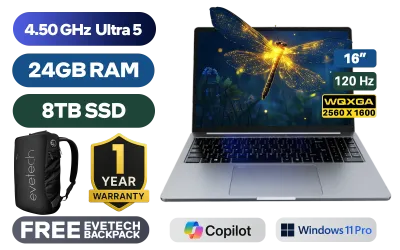 Ninkear N16 Pro Intel Core Ultra 5-125H up to 4.5GHz Processor, 18MB Cache, 14x Cores, 18x Threads / 24GB LPDDR5 RAM / 8TB Ultra-Fast NVME SSD / 16” 2.5K (2560 x 1600) 120Hz IPS-Level Display / Integrated Intel Arc Graphics / <span style="font-size: 20px; color: #00BFFF; font-weight: bold;">Windows 11 Professional (64bit)</span> / Intel WiFi 6 AX201 Wireless LAN / Bluetooth 5.2 / HD Camera / 3x USB Type-A / 1x USB Type-C / 1x HDMI / 1x Headphone & Microphone Combo Jack / 1x Mirco SD Card Reader / Finger Print Reader / Kensington Lock / White Backlit Keyboard / 2x Stereo Speakers with Dolby Audio / Free NinKear Wired Mouse / Free NinKear Mouse Pad / Free NinKear Multi-Language Keyboard Layouts / 1 Year Warranty / Ninkear N16 Pro Core Ultra 5 Laptop DealNinkear N16 Pro Intel Core Ultra 5-125H up to 4.5GHz Processor, 18MB Cache, 14x Cores, 18x Threads / 24GB LPDDR5 RAM / 8TB Ultra-Fast NVME SSD / 16” 2.5K (2560 x 1600) 120Hz IPS-Level Display / Integrated Intel Arc Graphics / Windows 11 Professional (64bit) / Intel WiFi 6 AX201 Wireless LAN / Bluetooth 5.2 / HD Camera / 3x USB Type-A / 1x USB Type-C / 1x HDMI / 1x Headphone & Microphone Combo Jack / 1x Mirco SD Card Reader / Finger Print Reader / Kensington Lock / White Backlit Keyboard / 2x Stereo Speakers with Dolby Audio / Free NinKear Wired Mouse / Free NinKear Mouse Pad / Free NinKear Multi-Language Keyboard Layouts / 1 Year Warranty / Ninkear N16 Pro Core Ultra 5 Laptop Deal [N16-Pro/8TB] / [+] GET FREE EVETECH NEO Premium Gaming Backpack+ FREE DELIVERY !