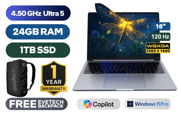 Ninkear N16 Pro Intel Core Ultra 5-125H up to 4.5GHz Processor, 18MB Cache, 14x Cores, 18x Threads / 24GB LPDDR5 RAM / 1TB Ultra-Fast NVME SSD / 16” 2.5K (2560 x 1600) 120Hz IPS-Level Display / Integrated Intel Arc Graphics / <span style="font-size: 20px; color: #00BFFF; font-weight: bold;">Windows 11 Professional (64bit)</span> / Intel WiFi 6 AX201 Wireless LAN / Bluetooth 5.2 / HD Camera / 3x USB Type-A / 1x USB Type-C / 1x HDMI / 1x Headphone & Microphone Combo Jack / 1x Mirco SD Card Reader / Finger Print Reader / Kensington Lock / White Backlit Keyboard / 2x Stereo Speakers with Dolby Audio / Free NinKear Wired Mouse / Free NinKear Mouse Pad / Free NinKear Multi-Language Keyboard Layouts / 1 Year Warranty / Ninkear N16 Pro Core Ultra 5 Laptop DealNinkear N16 Pro Intel Core Ultra 5-125H up to 4.5GHz Processor, 18MB Cache, 14x Cores, 18x Threads / 24GB LPDDR5 RAM / 1TB Ultra-Fast NVME SSD / 16” 2.5K (2560 x 1600) 120Hz IPS-Level Display / Integrated Intel Arc Graphics / Windows 11 Professional (64bit) / Intel WiFi 6 AX201 Wireless LAN / Bluetooth 5.2 / HD Camera / 3x USB Type-A / 1x USB Type-C / 1x HDMI / 1x Headphone & Microphone Combo Jack / 1x Mirco SD Card Reader / Finger Print Reader / Kensington Lock / White Backlit Keyboard / 2x Stereo Speakers with Dolby Audio / Free NinKear Wired Mouse / Free NinKear Mouse Pad / Free NinKear Multi-Language Keyboard Layouts / 1 Year Warranty / Ninkear N16 Pro Core Ultra 5 Laptop Deal [N16-Pro] / [+] GET FREE EVETECH NEO Premium Gaming Backpack+ FREE DELIVERY !