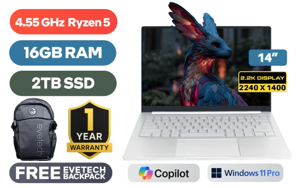 Ninkear S14 AMD Ryzen 5-7535HS up to 4.55GHz Processor, 19MB Cache, 6x Cores, 12x Threads / 16GB LPDDR5 RAM / 2TB Ultra-Fast NVME SSD / 14” 2.2K (2240 x 1400) IPS-Level Display / Integrated AMD Radeon 660M Graphics / <span style="font-size: 20px; color: #00BFFF; font-weight: bold;">Windows 11 Professional (64bit)</span> / RealTek WiFi 6 8852BE Wireless LAN / Bluetooth 5.3 / FHD Webcam / 1x USB Type-A / 3x USB Type-C (DisplayPort / Power Delivery) / 1x HDMI / 1x Microphone & Headphone Combo Jack / Finger Print Reader / White Backlit Keyboard / 2x Stereo Speakers / Stereo Speakers / Free NinKear Wired Mouse / Free NinKear Mouse Pad / Free NinKear Multi-Language Keyboard Layouts / 1 Year Warranty / Ninkear S14 AMD Ryzen 5 Laptop DealNinkear S14 AMD Ryzen 5-7535HS up to 4.55GHz Processor, 19MB Cache, 6x Cores, 12x Threads / 16GB LPDDR5 RAM / 2TB Ultra-Fast NVME SSD / 14” 2.2K (2240 x 1400) IPS-Level Display / Integrated AMD Radeon 660M Graphics / Windows 11 Professional (64bit) / RealTek WiFi 6 8852BE Wireless LAN / Bluetooth 5.3 / FHD Webcam / 1x USB Type-A / 3x USB Type-C (DisplayPort / Power Delivery) / 1x HDMI / 1x Microphone & Headphone Combo Jack / Finger Print Reader / White Backlit Keyboard / 2x Stereo Speakers / Stereo Speakers / Free NinKear Wired Mouse / Free NinKear Mouse Pad / Free NinKear Multi-Language Keyboard Layouts / 1 Year Warranty / Ninkear S14 AMD Ryzen 5 Laptop Deal [S14/2TB] / [+] GET FREE EVETECH FLUX Premium Gaming Backpack+ FREE DELIVERY !