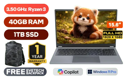 Ninkear YBOOK 15 AMD Ryzen 3-3250U up to 3.5GHz Processor, 5MB Cache, 2x Cores, 4x Threads / 40GB DDR4 RAM / 1TB Ultra-Fast NVME SSD / 15.6” FHD (1920 x 1080) IPS-Level Display / Integrated AMD Radeon Graphics / <span style="font-size: 20px; color: #00BFFF; font-weight: bold;">Windows 11 Professional (64bit)</span> / RealTek 8821CE Wireless LAN / Bluetooth 4.2 / 720p HD Webcam / 3x USB Type-A / 1x USB Type-C / 1x HDMI / 1x Microphone & Headphone Combo Jack / 1x RJ-45 / White Baclit Keyboard / 2x Stereo Speakers with Dolby Audio / Free NinKear Wired Mouse / Free NinKear Mouse Pad / Free NinKear Multi-Language Keyboard Layouts / 1 Year Warranty / Ninkear YBOOK 15 AMD Ryzen 3 Laptop DealNinkear YBOOK 15 AMD Ryzen 3-3250U up to 3.5GHz Processor, 5MB Cache, 2x Cores, 4x Threads / 40GB DDR4 RAM / 1TB Ultra-Fast NVME SSD / 15.6” FHD (1920 x 1080) IPS-Level Display / Integrated AMD Radeon Graphics / Windows 11 Professional (64bit) / RealTek 8821CE Wireless LAN / Bluetooth 4.2 / 720p HD Webcam / 3x USB Type-A / 1x USB Type-C / 1x HDMI / 1x Microphone & Headphone Combo Jack / 1x RJ-45 / White Baclit Keyboard / 2x Stereo Speakers with Dolby Audio / Free NinKear Wired Mouse / Free NinKear Mouse Pad / Free NinKear Multi-Language Keyboard Layouts / 1 Year Warranty / Ninkear YBOOK 15 AMD Ryzen 3 Laptop Deal [Ybook15/40GB/1TB] / [+] GET FREE EVETECH DASH Premium Gaming Backpack+ FREE DELIVERY !
