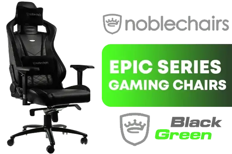 noblechairs EPIC Series Gaming Chair - Black/Green / Premium Design / Finest Design / Solid Steel Frame / Plenty of Adjustment / Easy Assembly / Max Load 120kg / NBL-PU-GRN-002