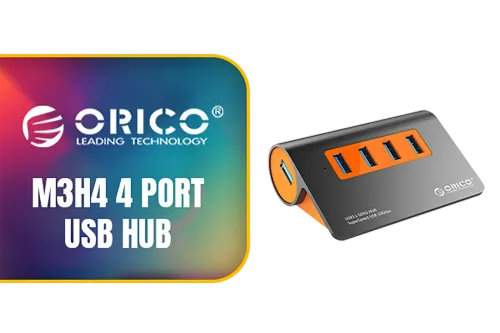 Orico 4 Port USB Hub Dark Gray-Orange / USB 3.0 / 32 Degree Aluminum / USB3.0 Type-A / Wide Support for Various USB Devices / ORICO-M3H4-G2-EU-OG / ORICO-M3H4-G2-EU-OG