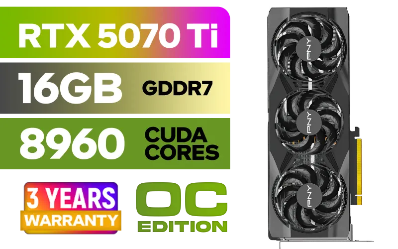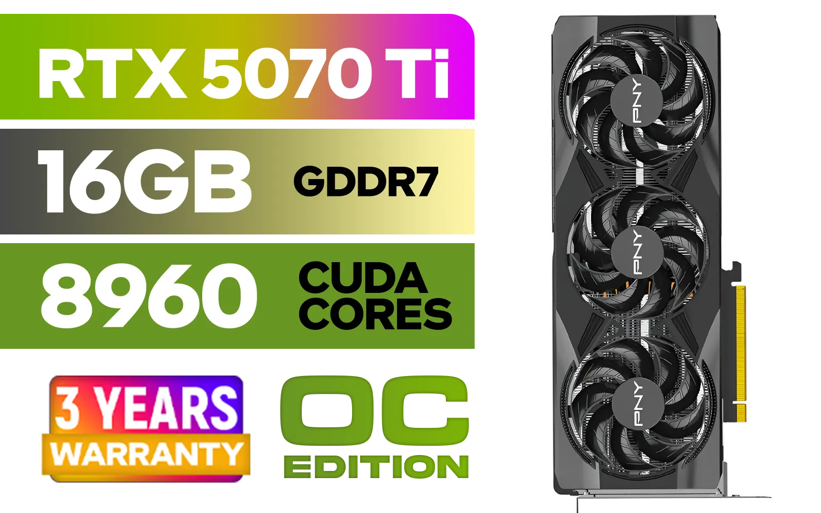 PNY GeForce RTX 5070 Ti Overclocked Triple Fan 16GB GDDR7 Gr