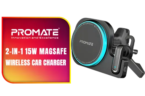 Promate 2 in 1 15W MagSafe Wireless Car Charger