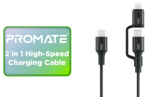 Promate 2 in 1 High-Speed Charging Cable - 1.2 Meter
