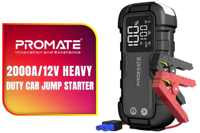 Promate 2000A 12V Heavy Duty Car Jump Starter with Power Bank
