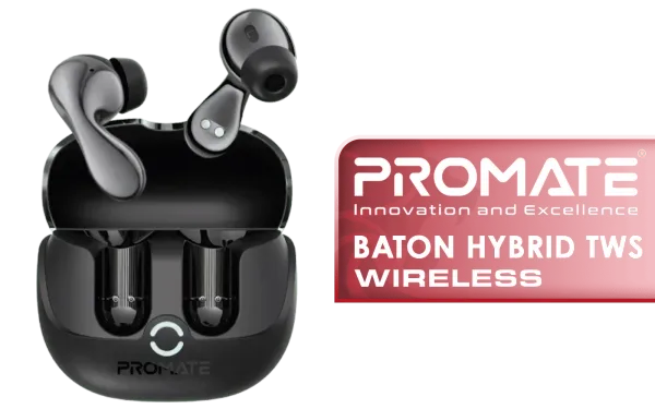 Promate Baton High-Definition Hybrid TWS Earbuds with Intell