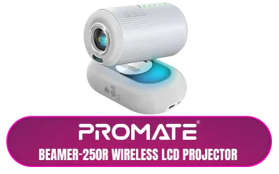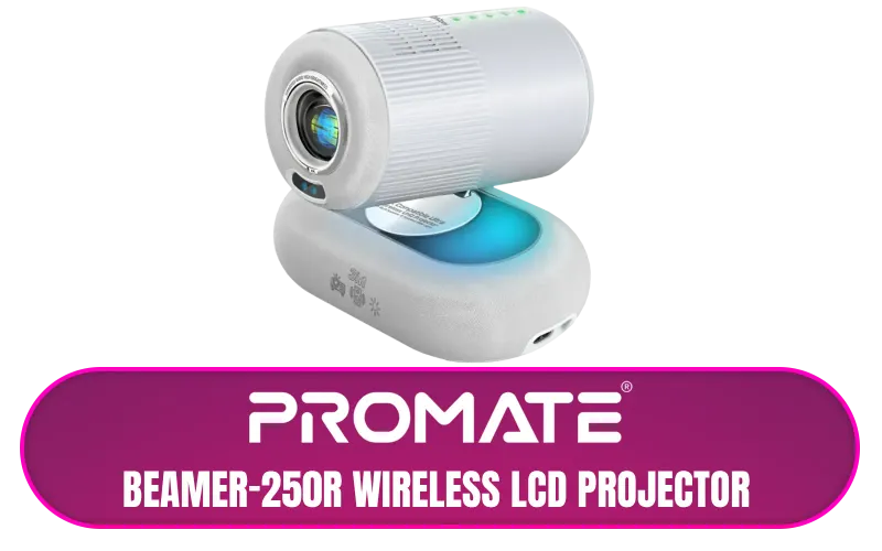 Promate Beamer-250R Wireless LCD Projector / 4K Compatible / Built-In Speaker / Ambient RGB light / LCD 3.0" LVDS Technology / 250 ANSI Lumens Brightness / Integrated Wi-Fi, Bluetooth 5.4, HDMI, and USB / Beamer-250R.EU