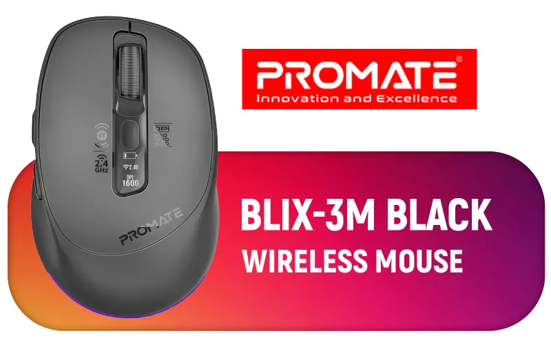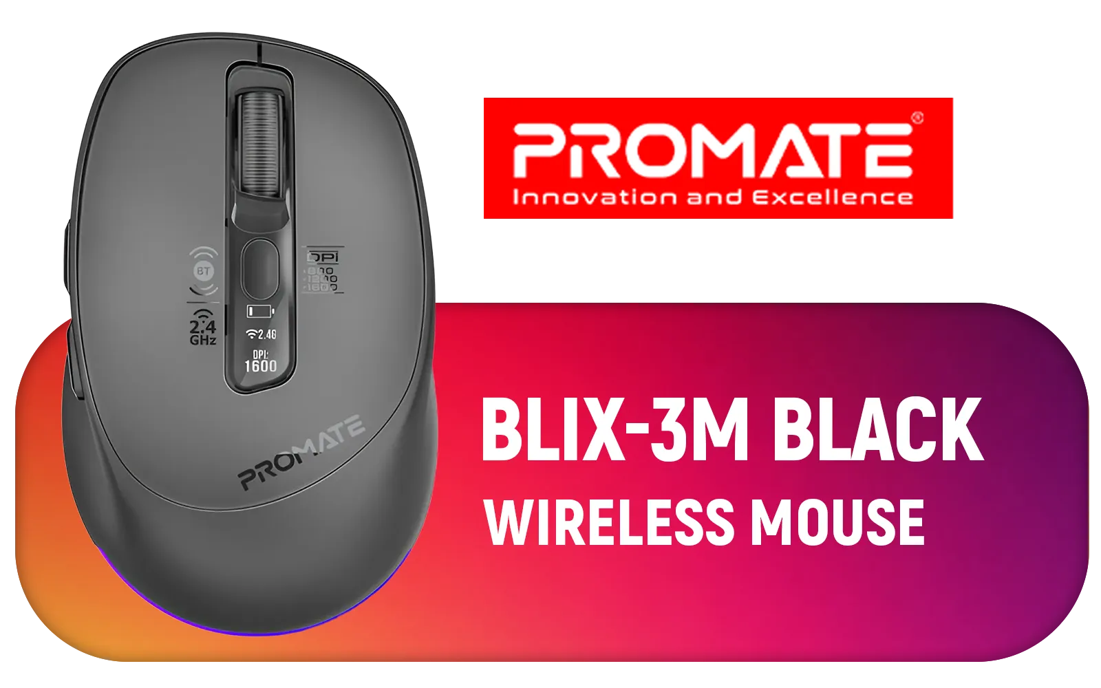 PROMATE BLIX-3M Black Silent-Click Wireless Mouse