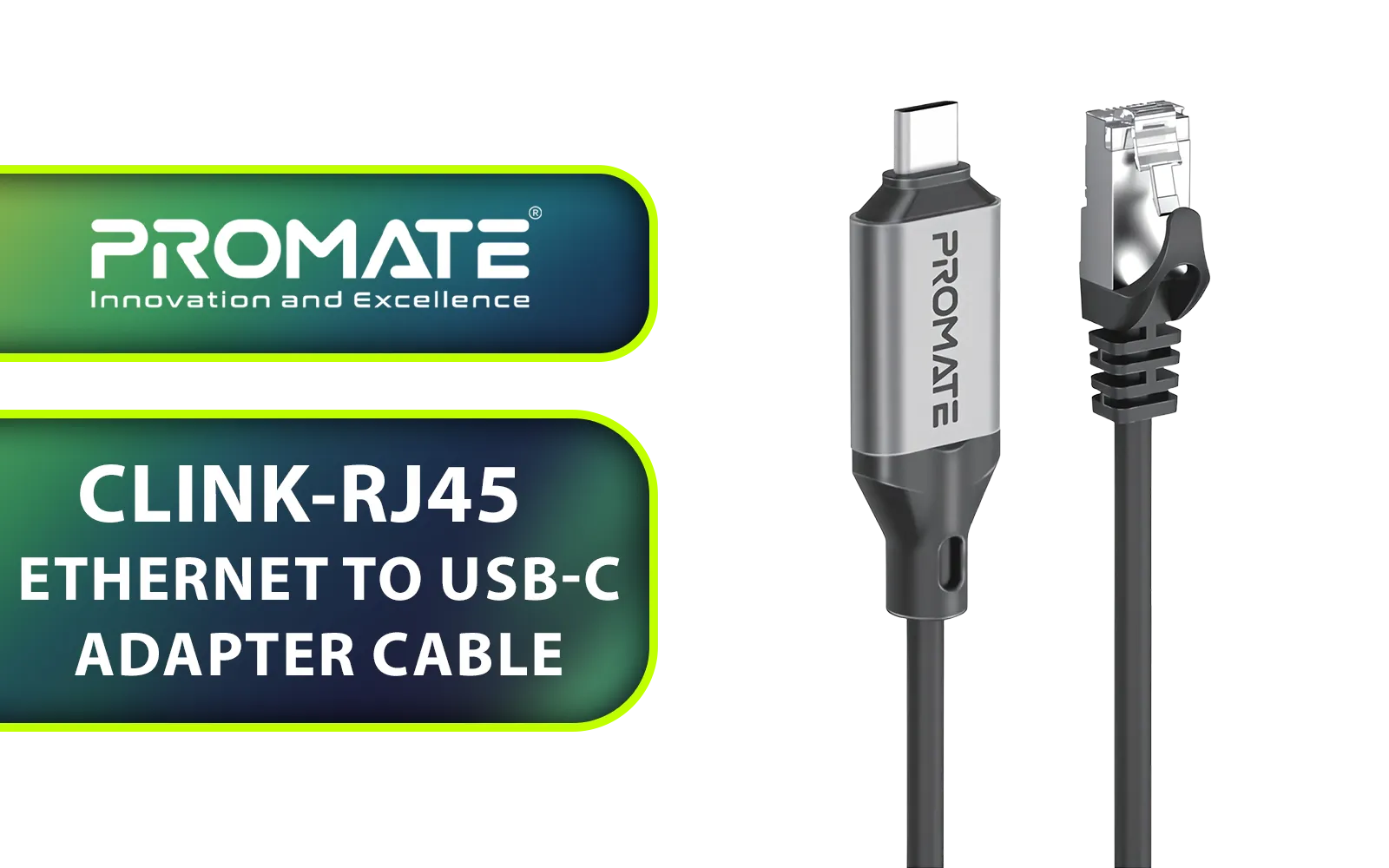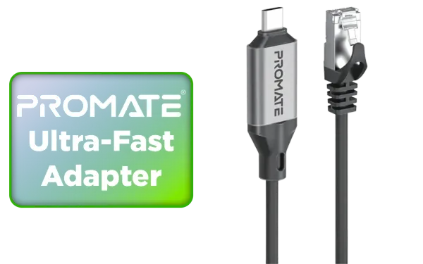 Promate Ultra-Fast Ethernet to USB-C Adapter Cable with 1000