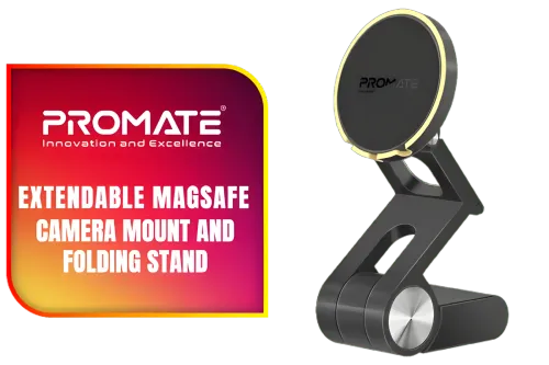 Promate Extendable MagSafe Camera Mount & Folding Stand - Black / Foldable Design / Continuity Camera Mode / Compatible with Different Screen Sizes / VersaMount.Black / VersaMount.Black
