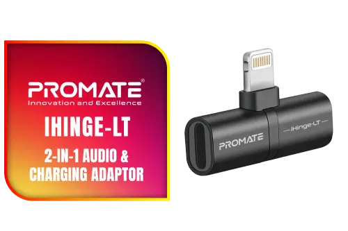 Promate iHinge LT Black 2 in 1 Audio and Charging Adaptor Bl