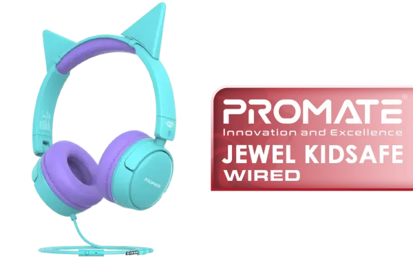 Promate Jewel HD Stereo KidSafe Wired Headset Aqua