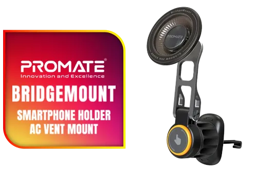 Promate MagGrip™ 360° Rotatable Smartphone Holder AC Vent Mount / For Horizontal and Grid Air Vents / N52H powerful magnets / Metal Ring Included / BridgeMount / BridgeMount