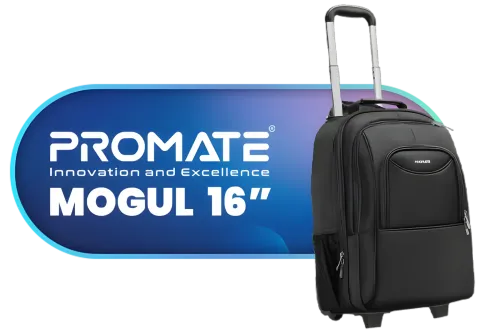 Promate Laptop Trolley Bag, Water Resistance 16-inch Laptop Bag with Adjustable Backpack Straps, Spacious Large Compartments, Skate Wheels and Secure Zippers for Laptop, Tablets / MOGUL-TR / MOGUL-TR