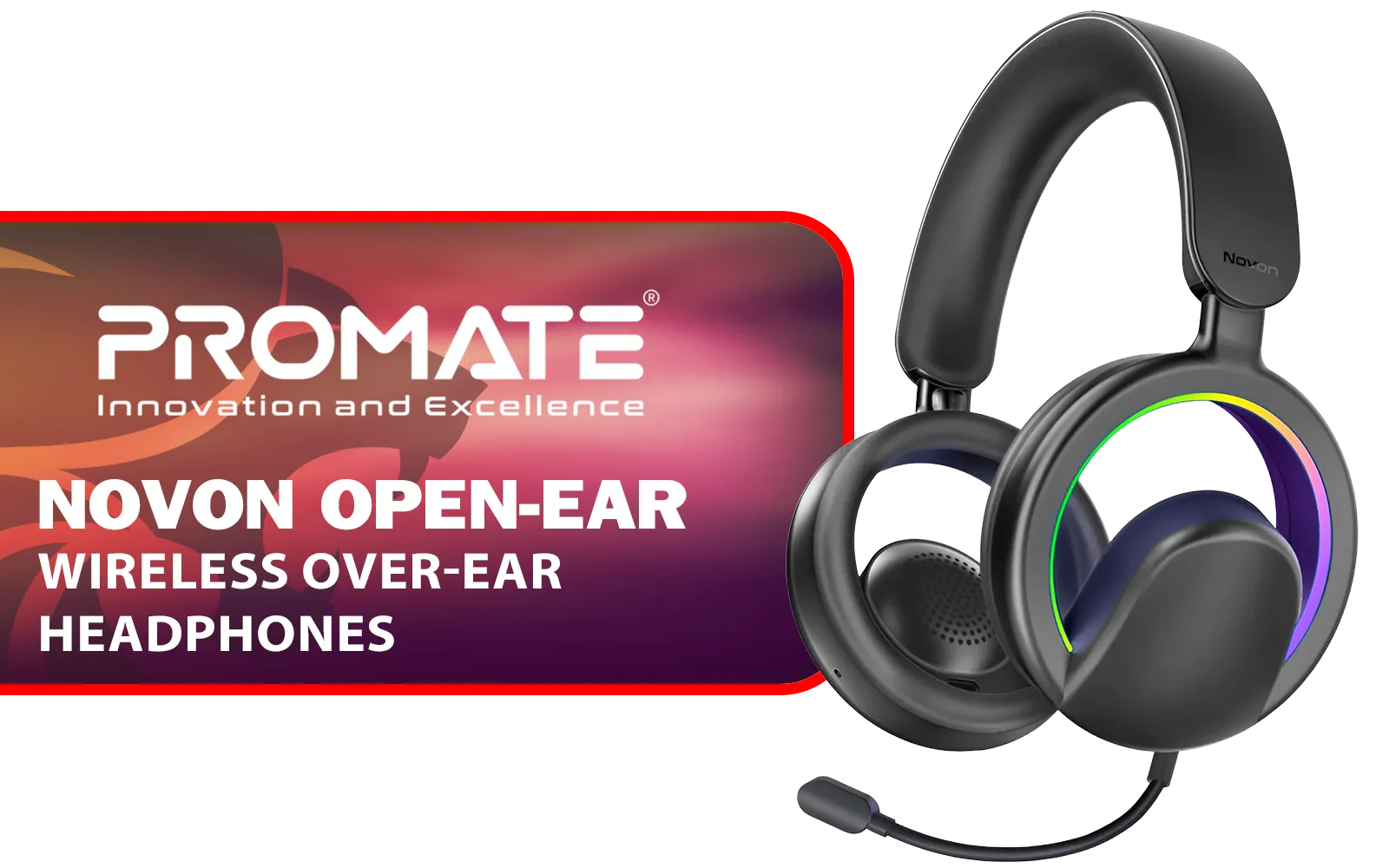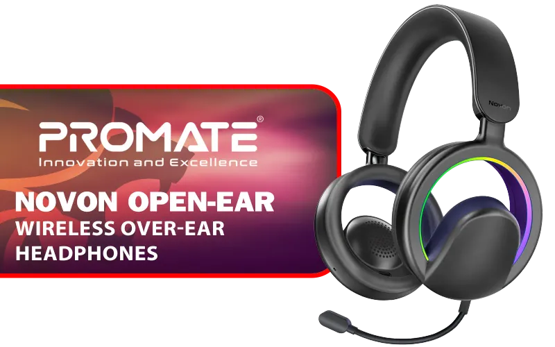 PROMATE NOVON.BLACK Open-Ear Wireless Over-Ear Headphones