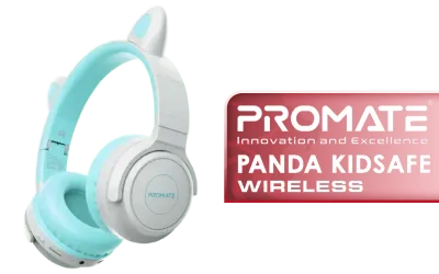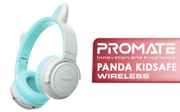 Promate Panda KidSafe Kawaii Style Wireless Kids Headset Aqua