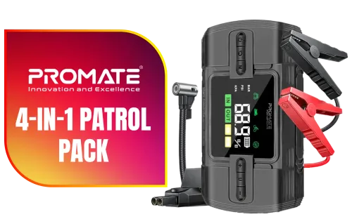 Promate 4 in 1 Patrol Pack / Car Jump Starter, Power Bank, Air Compressor & LED Flashlight / 1200A/12V High Capacity Car Jump Starter Power Bank w/ Air Compressor & LED Flashlight / 12000mAh Battery Capacity / 150 PSI / 270lm LED Torch / Smart Clamps / LCD Screen / PatrolPack-3 / PatrolPack-3 + FREE DELIVERY !
