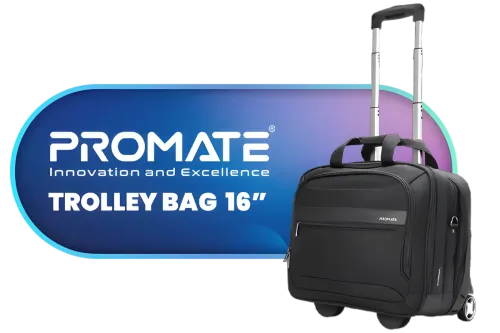 Promate Laptop Trolley Bag, Water Resistance 16-inch Laptop Bag with Shoulder Strap, Multiple Large Compartments, Durable Wheels and Lightweight design for Laptop, Tablets / PERSONA-TR / PERSONA-TR
