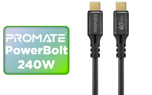 Promate PowerBolt 240W USB-C Cable 2m — 8K@60Hz, Thunderbolt 3 | Evetech