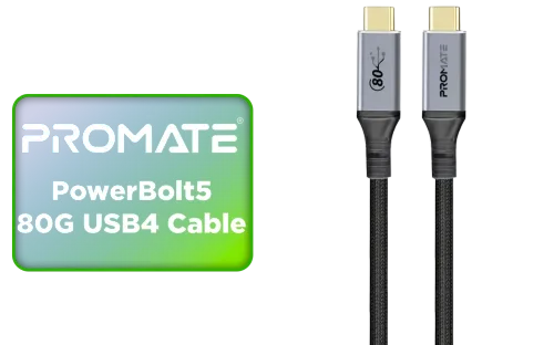 Promate PowerBolt5-80G USB4 Cable 80Gbps Data Transfer, 240W