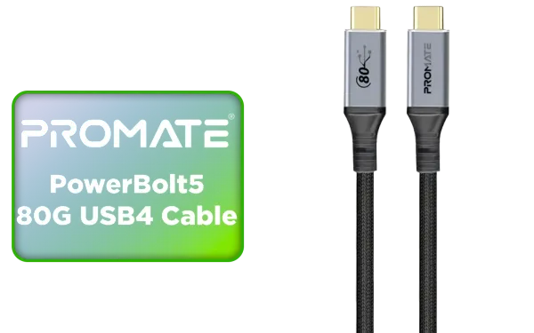 Promate PowerBolt5-80G USB4 Cable 80Gbps Data Transfer, 240W