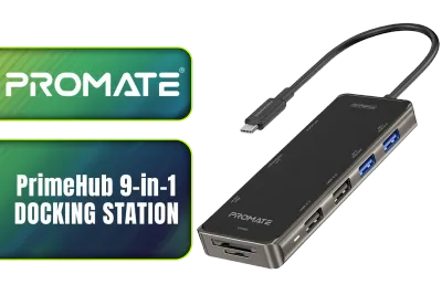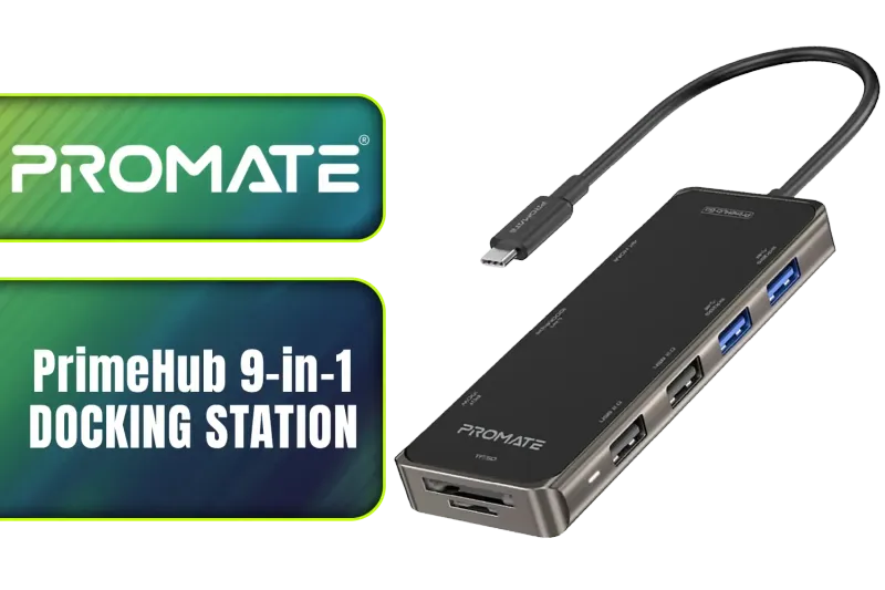 Promate PrimeHub 9-in-1 Docking Station / USB Type-C 100W PD / USB Type-A 3.0 & 2.0 Ports / 1x 4K HDMI Ports / RJ45 Port @ 1000Mbps / SD & MicroSD Slots / PrimeHub-Go