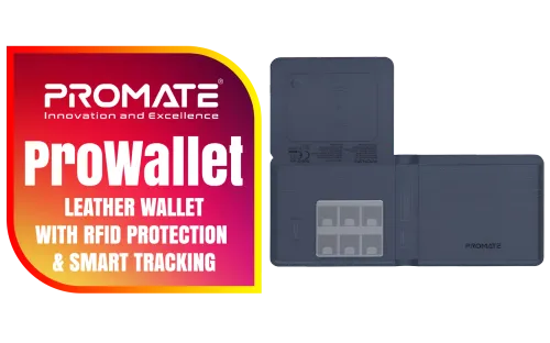Promate ProWallet - Blue / Scratch Resistant Slim Leather / RFID Protection / Works with Apple Find My / Built in Speaker / Supports Wireless Charging / Smart Storage with Extra SIM and MicroSD Slots / ProWallet.Blue / ProWallet.Blue + FREE DELIVERY !