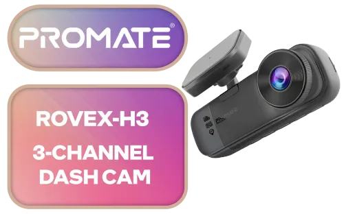 Promate Rovex-H3 Triple Channel Dash Cam 4K UHD, GPS Speed T