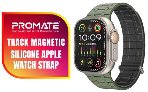 Promate Track Premium Magnetic Silicone Watch Strap Midnight