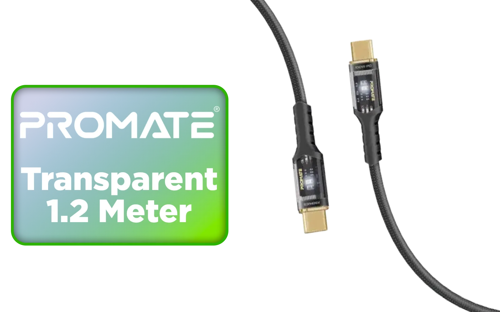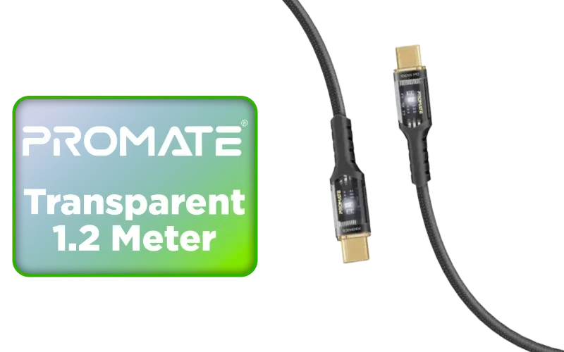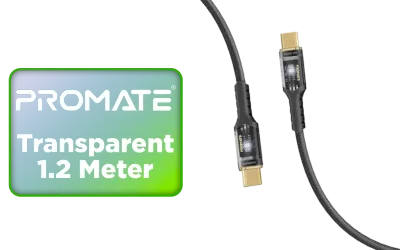 Promate Transparent 1 2 Meter Charging Cable with LED Light