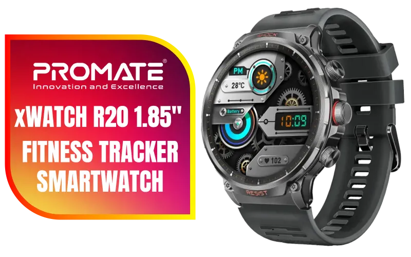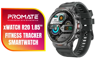 Promate xWatch R20 1.85" Fitness Tracker Smartwatch with Bluetooth Calling - Black / IP67 Water Resistance / 1.85" TFT Round Screen Display / Heart Rate/SPO2/Step/Sleep/ Women Health Tracker / 100+ Customized Watch Faces / xWatch-R20.Black